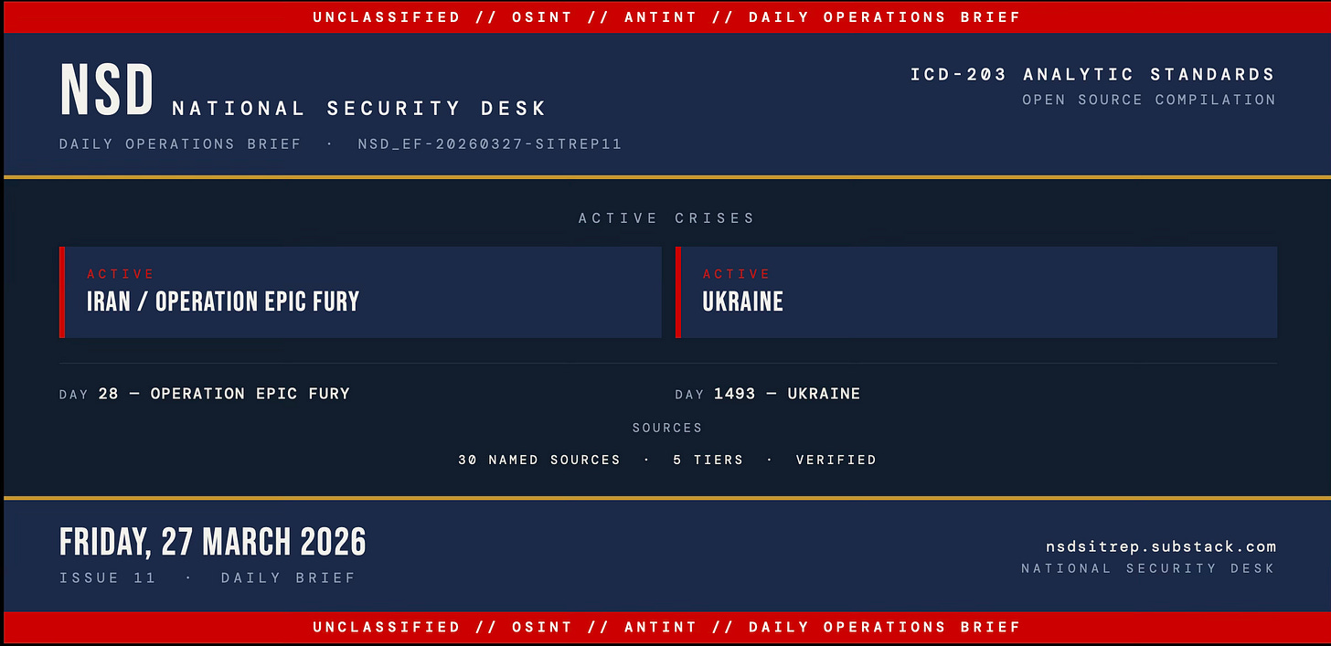 NSD SITREP is published by the National Security Desk. All sources open-source. ICD-203 analytic standards applied throughout. National Security Desk · https://substack.com/@milab