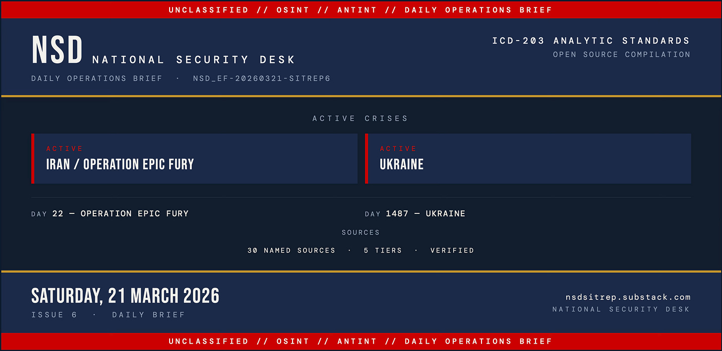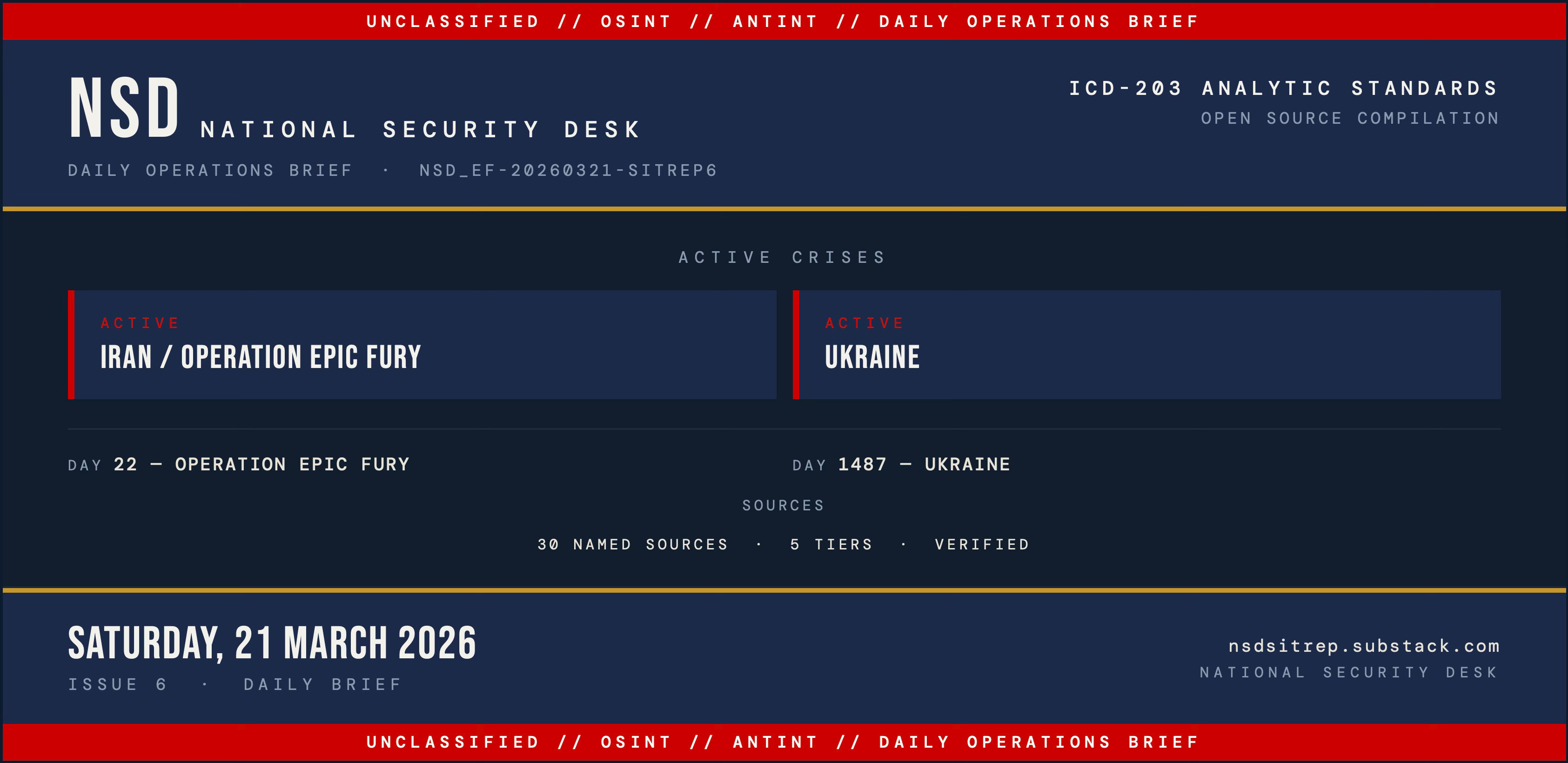 NSD SITREP is published by the National Security Desk. All sources open-source. ICD-203 analytic standards applied throughout. National Security Desk · https://substack.com/@milab